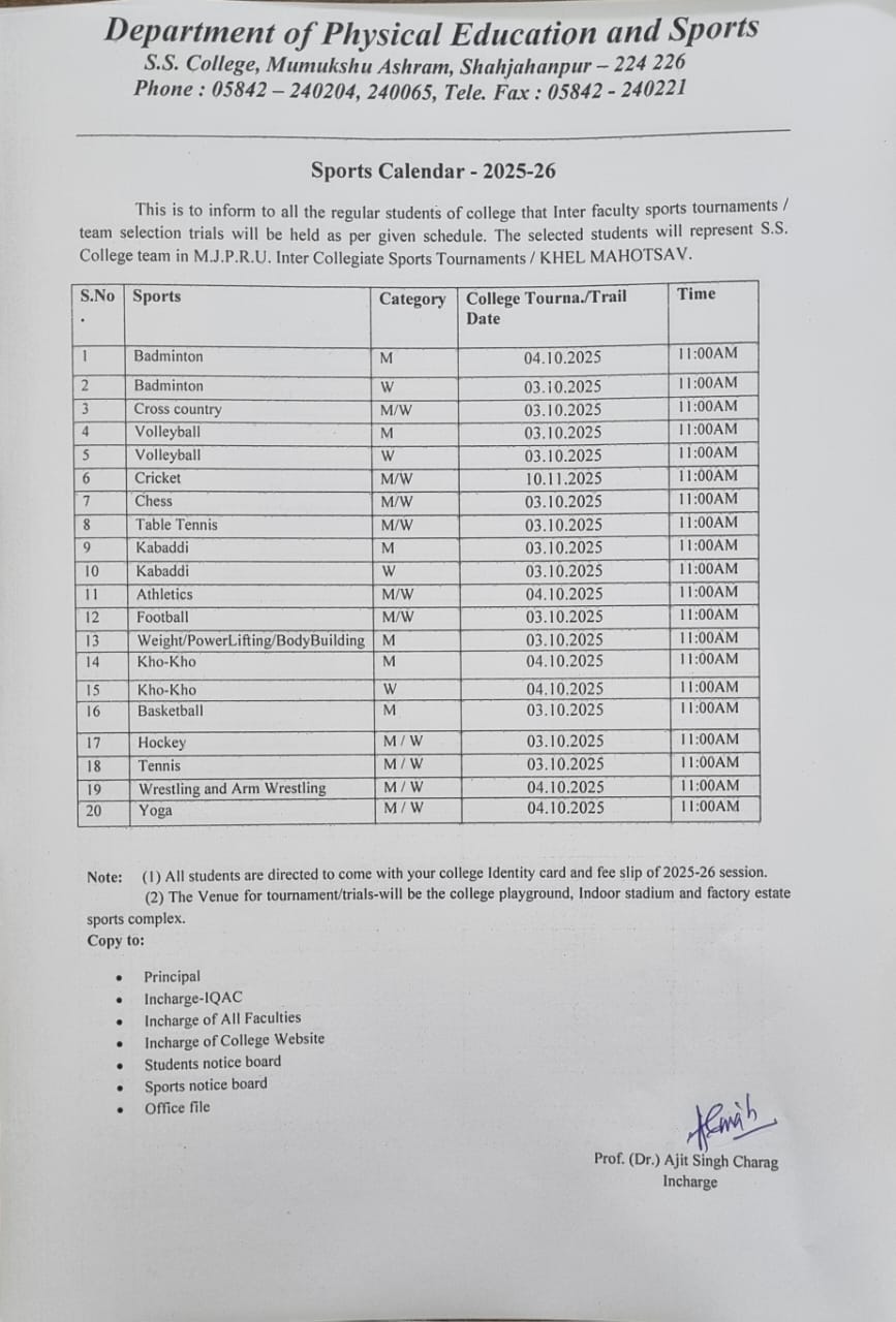 Affiliated to M.J.P. Rohilkhand University, Bareilly, Recognised u/s 2(f) 12(B) of UGC Act